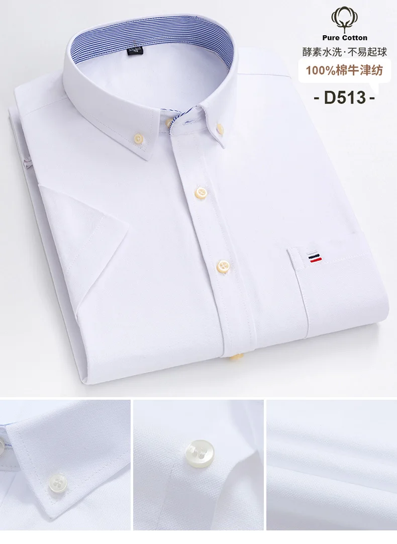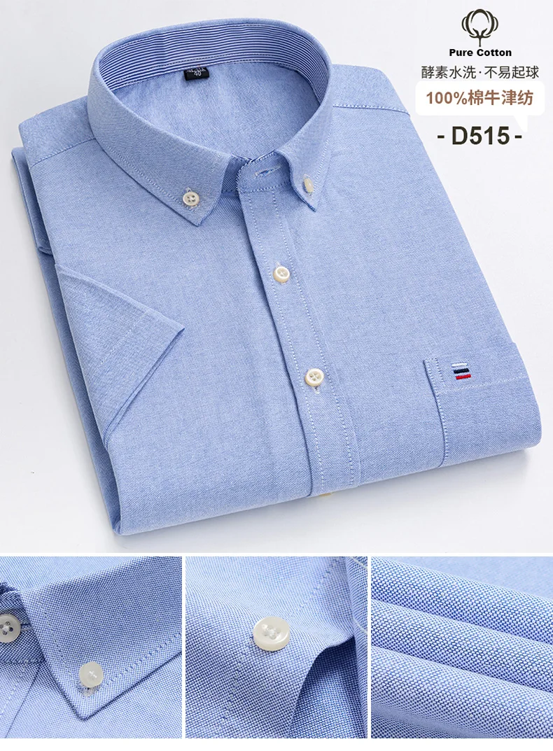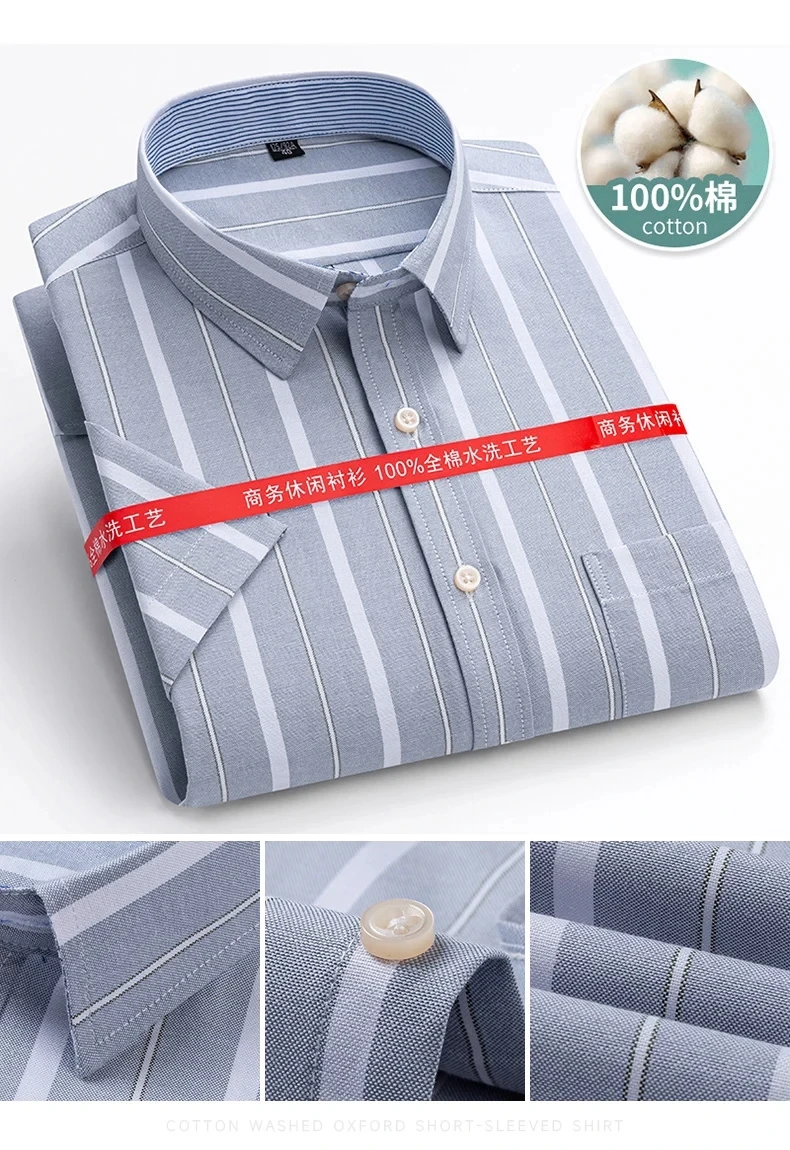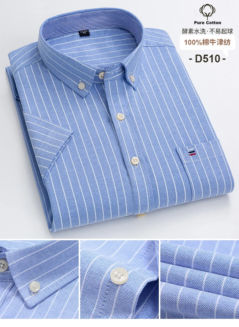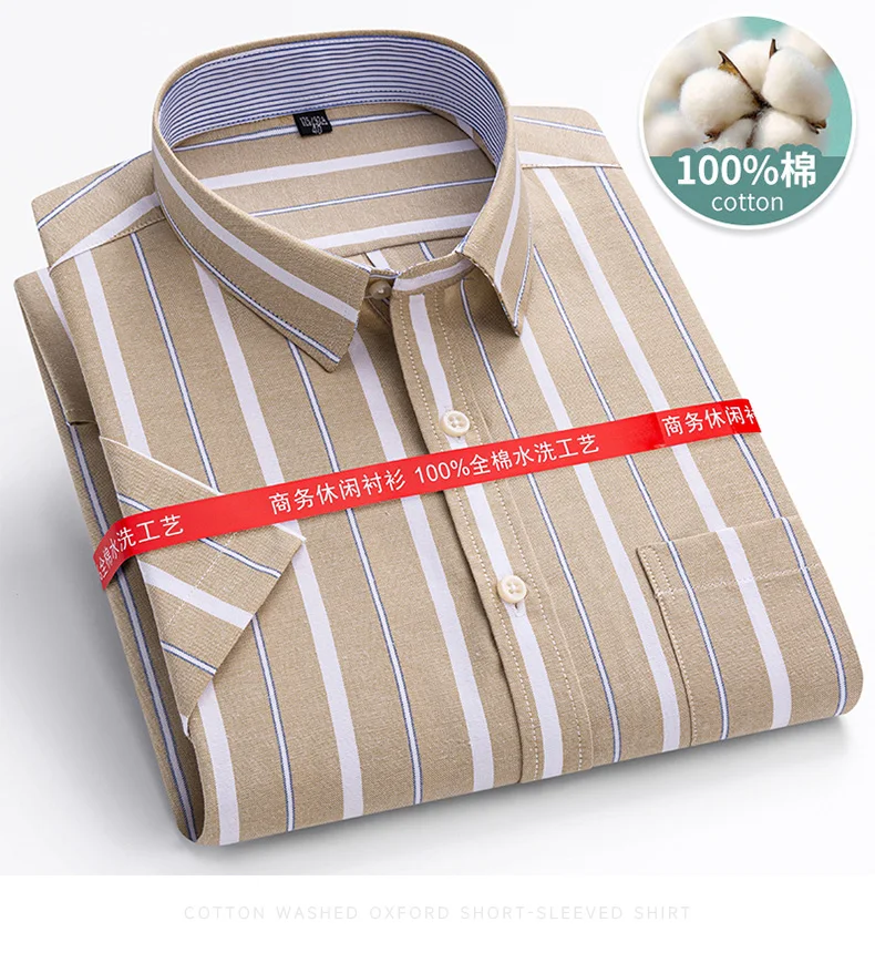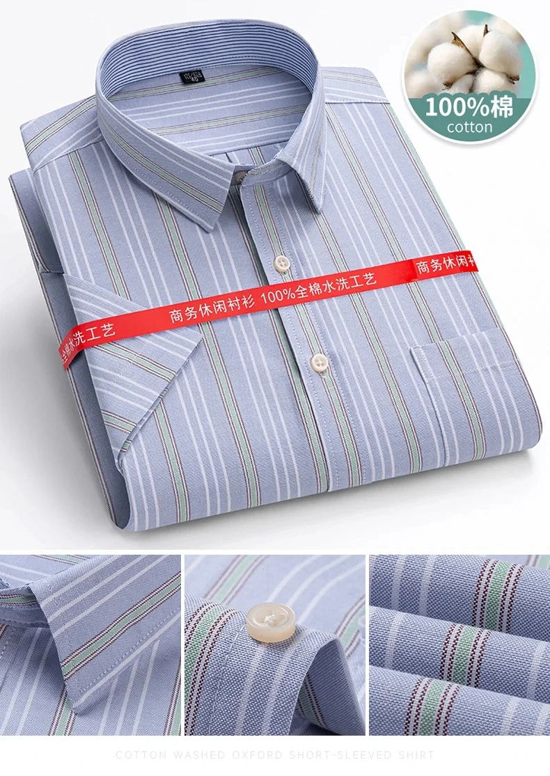 100%Pure Cotton Oxford Men’s Shirts Short Sleeve Plaid Soft Regular Fit Formal Dress Shirt Social Blouse Male Clothes 6XL 7XL