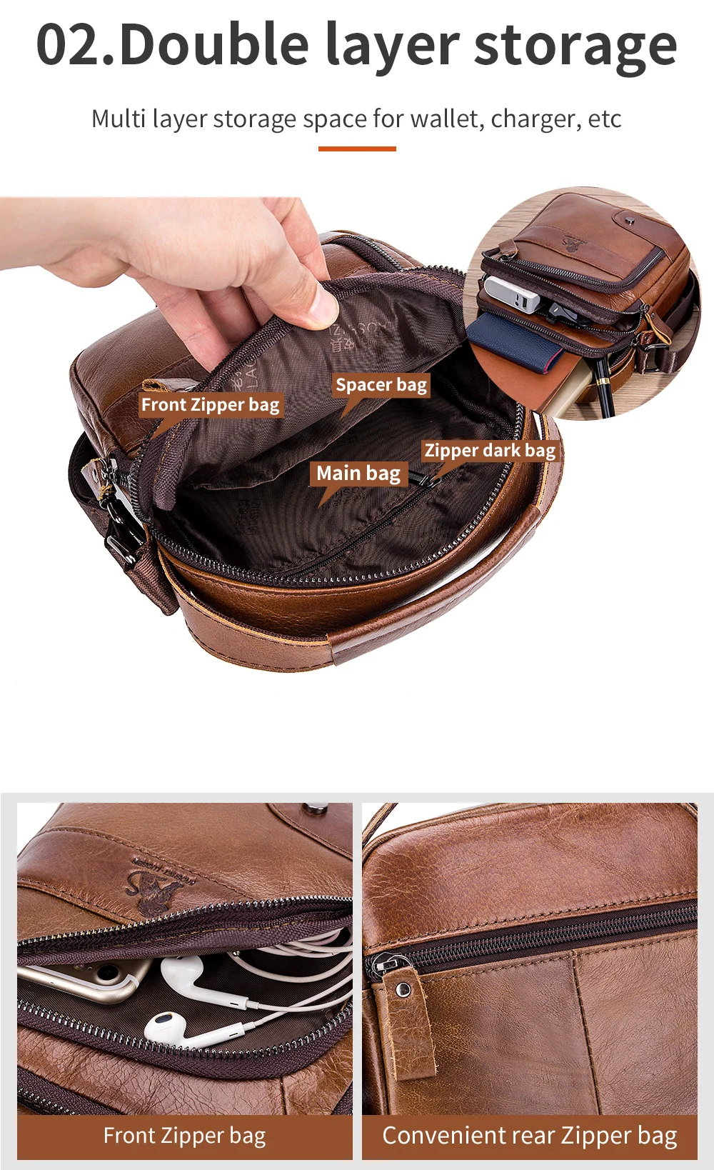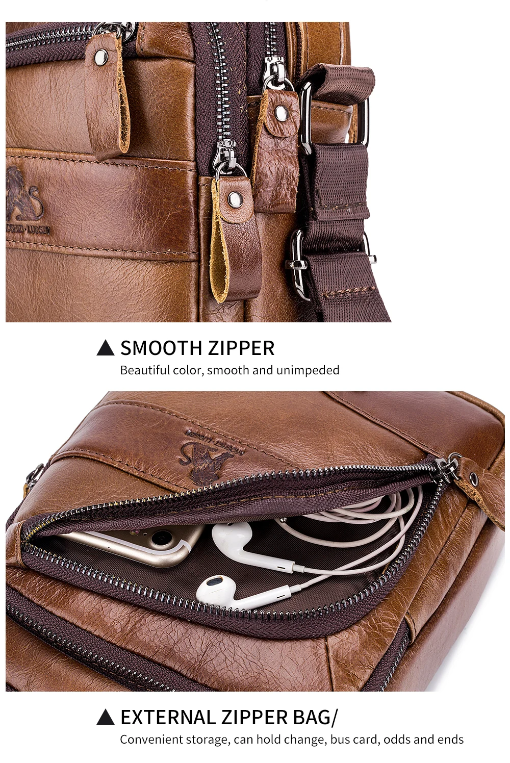 Genuine leather men’s diagonal crossing headband layer cowhide small shoulder bag for casual sports shoulder bag