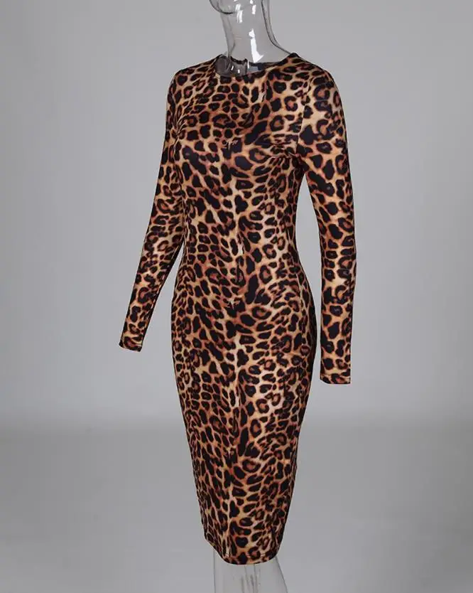 Sexy Women's Luxury Evening Dress 2024 Autumn Fashion Trend Leopard Print Long Sleeved Casual O-Neck Bodycon Dress Y2K Dresses