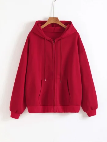 Autumn Fashion Solid Zipper Hoodie Women Warm Fleece Hooded Sweatshirt Casual Street Pocket Sportswear Oversized Female Clothing